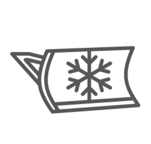 Une lame neige qui se fixe à l'avant du véhicule, contrôlée par joystick depuis le poste de conduite.