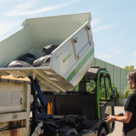 Collectez les déchets partout dans votre collectivité : l'ET-LANDER se transforme en camion-poubelle ultra compact pour ramasser les ordures ménagères et autres déchets dans les zones les plus inaccessibles. Sa puissance vous permet de monter les côtes les plus pentues, même non goudronnées.